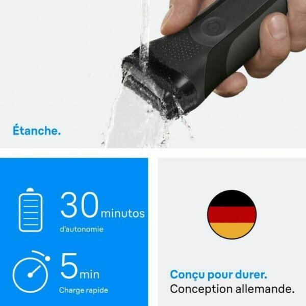 Golarka elektryczna Braun Series 3 to urządzenie zaprojektowane, by zapewnić skuteczne i wygodne golenie, łącząc zaawansowaną technologię z praktycznością. Posiada solidną konstrukcję z wykończeniem w kolorze czarnym i szarym, które wraz z powłoką w odcieniu noir nadają elegancji i trwałości. Golarka wyposażona jest w akumulator umożliwiający do 30 minut ciągłej pracy po pełnym naładowaniu, co pozwala na nieprzerwane sesje. Wyróżnia się funkcją szybkiego ładowania w zaledwie 5 minut, idealną na nagłe sytuacje lub gdy jest mało czasu. Zasilana jest również przez kabel elektryczny z wtyczką EU, co gwarantuje kompatybilność i łatwość ładowania w całej Europie. Technologia golarki zapewnia precyzyjne golenie dzięki systemowi regulowanych ostrzy i wydajnemu silnikowi dostosowującemu się do różnych rodzajów zarostu, minimalizując podrażnienia i zapewniając gładkie, jednolite efekty. Połączenie ergonomicznego designu, funkcji elektrycznych i autonomii sprawia, że Braun Series 3 to niezawodne narzędzie do codziennej pielęgnacji męskiej. To zrównoważona golarka elektryczna, która spełnia oczekiwania pod względem komfortu, wydajności i łatwości użytkowania w segmencie średniej klasy premium Brauna.